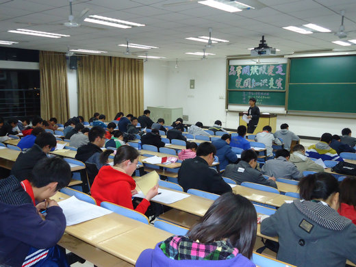 晚上七点整,同学们已安然入座。随着铃声响起,监考人员准时发卷。拿到试卷,同学们并不急着答卷,而是先大致浏览了试卷的主要内容。本次竞赛采取闭卷笔试形式,试卷分填空、选择、简答三个部分,以党、团的基本理论和最新理论成果以及党、团的重大活动、事件和重要人物等知识为竞赛内容。参赛同学以《中国共产党简史》、党章等作为参考资料,大家准备充分,沉着不慌,答题稳而有序。对于每一题,同学们经过慎重思考、认真思索后才会将答案填写于试卷上。一个半小时的竞赛过程中,全场静默无语,只见同学们埋首专注于手中的试卷,将自己对党、团的认识与了解以最完满的形式呈现于试卷上。最后,竞赛结束,同学们依次交卷,纷纷离场。