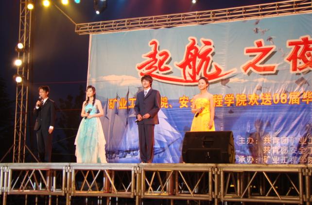 学生会承办的“启航之夜”毕业生晚会在南湖校区二餐厅广场隆重举行。校党委宣传部副部长刘静丽、校精神文明办公室副主任李广文、学生工作处副处长蒋敏老师、校团委书记熊志忠老师、矿业a片无码