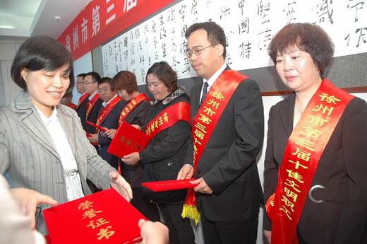 周福宝老师荣获“十佳文明职工”荣誉称号,并参加了4月27日在徐州市总工会举行的徐州市第三届“十佳文明职工”座谈会。