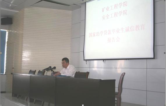 首先,张云峰主任做了关于诚信知识和诚信还贷的报告。在报告中,张主任对个人诚信制度进行了简介,并通过几个真实的典型案例,向大家说明了诚信报告对个人的影响,并就还款时间及还款方式做了说明。张主任提醒同学们要珍惜自己的信用行为,养成良好的信用交易习惯。最后,全体贷款毕业生进行了宣誓,承诺自己将按期偿还贷款,做一个知荣辱、守诚信的矿大毕业生。同学们还观看了有关助学贷款的专题片。