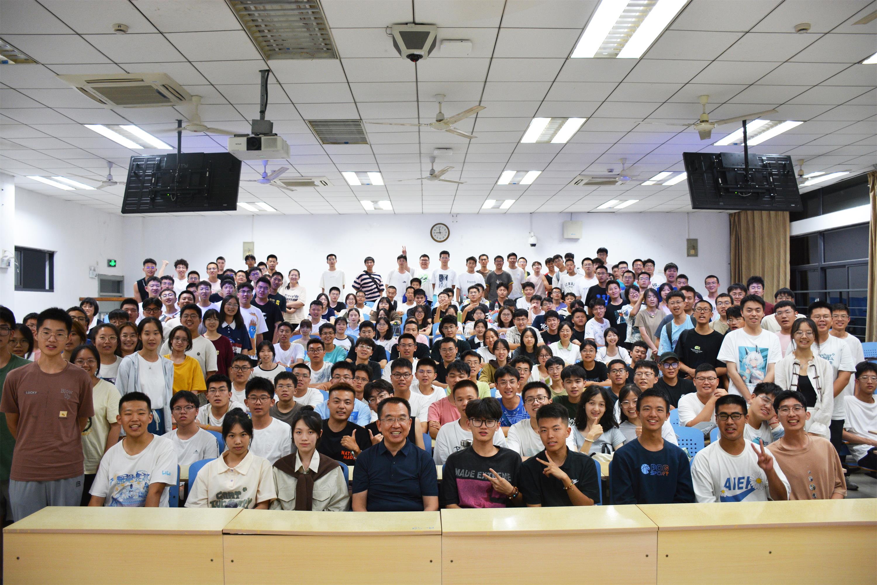 专业设置情况、培养方案和就业情况,还采用问答形式,启发同学们对“学习”这个概念进行思考,并鼓励同学们提升理解能力、强化思考能力、保持好奇心,还现场逐一解答同学们的提问。最后,他勉励同学们,青年一代生逢盛世,一定要将实现个人价值同国家发展需求相结合,在民族复兴的征途中贡献青春力量。