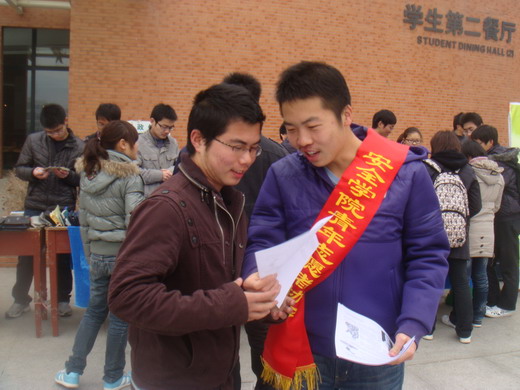在认领失物活动的同时,另一部分志愿者向过往的同学发放关于“如何预防春季流感”的宣传单,并给拿到传单的同学耐心地叙述在春季预防流感的常用措施。