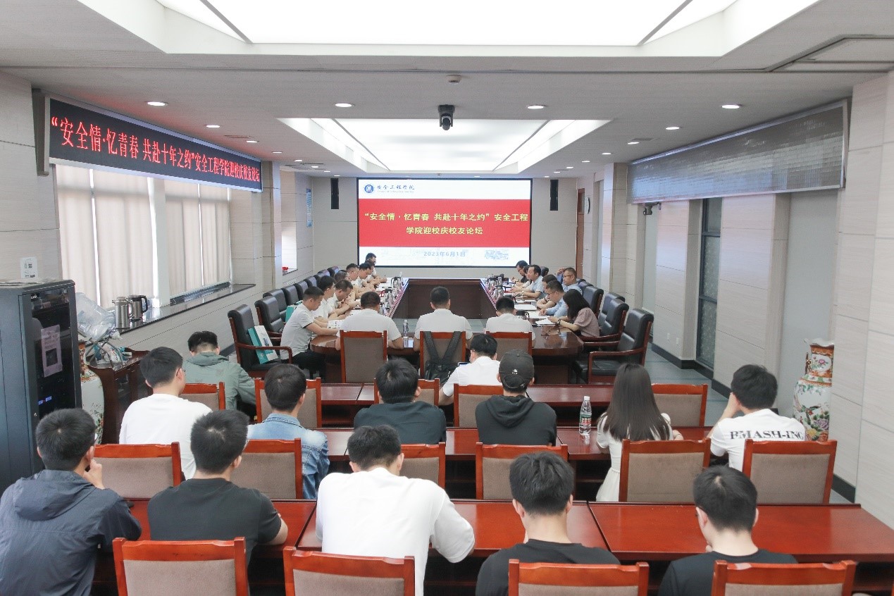 在矿业科学中心A412会议室举办“安全情•忆青春 共赴十年之约”迎校庆校友论坛座谈会。院党委书记曲颂,行政副院长郭梅香,院党委副书记、本科09级辅导员孙留涛,副院长刘晓斐,本科07、08级辅导员李秀,建院以来毕业十年的本科07、08、09级校友代表以及部分学生代表参加了会议。会议由行政副院长郭梅香主持。