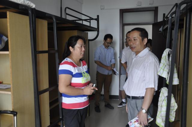 在新生报到现场,章毛平书记仔细询问迎新的每一个环节,观看了发给新生的新生手册和学生会部门宣传手册。他要求工作人员务必认真仔细、高效快捷地服务好每一位前来报到的新生,让新同学感受到“家”的温暖。随后,章毛平书记,院办公室魏静老师与辅导员孙留涛老师来到学生宿舍,看望2015级新生及其家长,并与他们亲切地交谈。他认真地查看宿舍的各种设施,要求进一步完善和维护好宿舍设施,确保消防安全疏散通道和安全出口畅通,对进出入来访要严格检查等,确保新生安全入住。