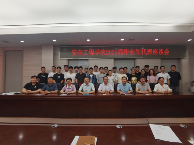 在矿业科学中心A412举行2021届毕业生代表座谈会。院党委书记王思华,院长王恩元,院党委副书记孙留涛,行政副院长郭梅香,副院长王亮,副院长仲晓星,17级6班行政班主任程婷婷出席活动,17级23名毕业生代表参加座谈会。座谈会由学工办主任、团委书记刘世通主持。