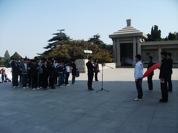 一行三十余人庄严地站在纪念碑前,瞻仰先烈们的丰功伟绩,向这些为我们今日的幸福生活抛头颅洒热血的革命前辈们致以最崇高的敬意。扫墓共分四个环节,分别是回顾战争往事、碑前献花、默哀两分钟以及入党宣誓。宣誓完成后,大家绕碑一周,纪念所有为解放独立牺牲的战士们。