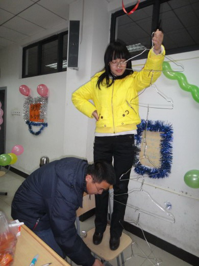 各部门、社团以及承办活动的班级就开始着手布置教室,经过彩球和其他装饰品的装饰,原本毫无生气的教室立刻变得喜庆祥和了。晚上七点游艺宫活动正式开始,教室洋溢着热闹欢乐的节日气氛。a片无码