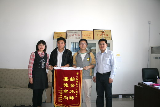 安全工程08-4班学生党员、院学生会主席刘建安与几位同学参加完下午的社团活动后,在三食堂二楼就餐时拾到了孙先生的钱包。之后几位同学辗转多方联系失主未果。等了一个多小时后,他们在失物所在餐桌上留了一张附有联系方式的纸条,并把钱包寄存到三食堂三楼校团委宣教部办公室后离去。当晚9:00左右,失主孙先生发现纸条后,按纸条上的信息,在刘建安等同学的帮助下取回了失而复得的钱包,钱包里4776元现金、银行卡、身份证和驾驶证等物件无一遗失。孙先生对刘建安同学表达谢意之后,对我们a片无码